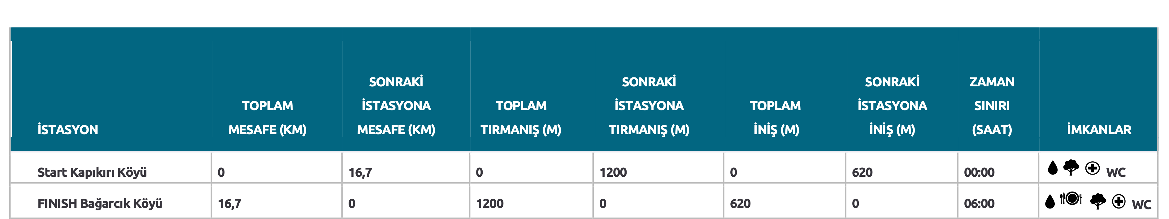 - Finish Bağarcık (17K) cut-off 6 sattir. Konum için tıklayınız.