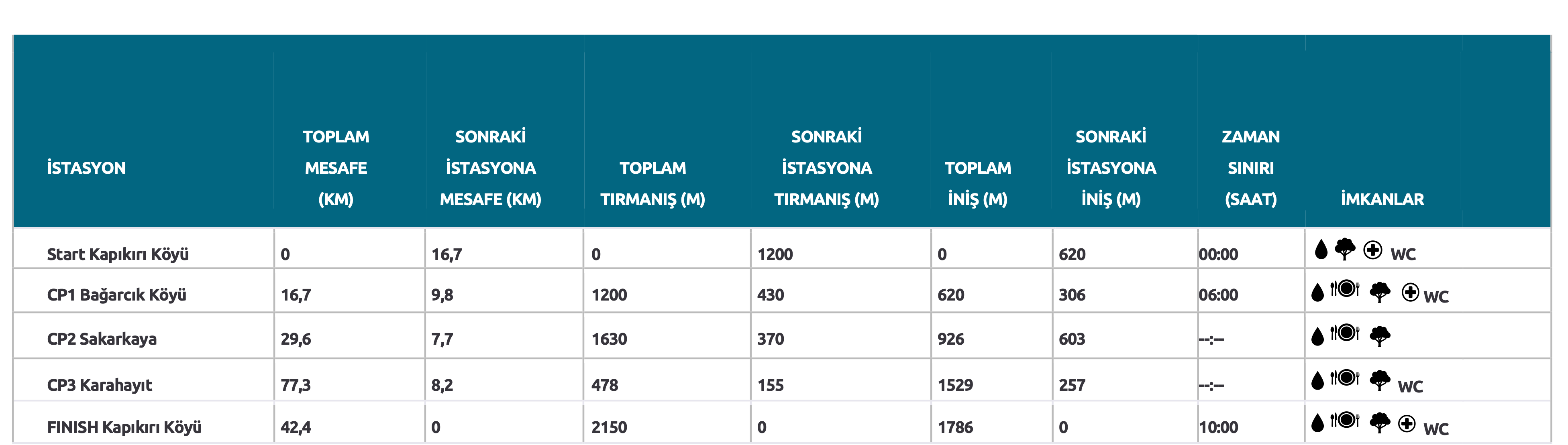 - CP1 Bağarcık (16.7 km) cut-off saati 12:30 Konum için tıklayınız.
